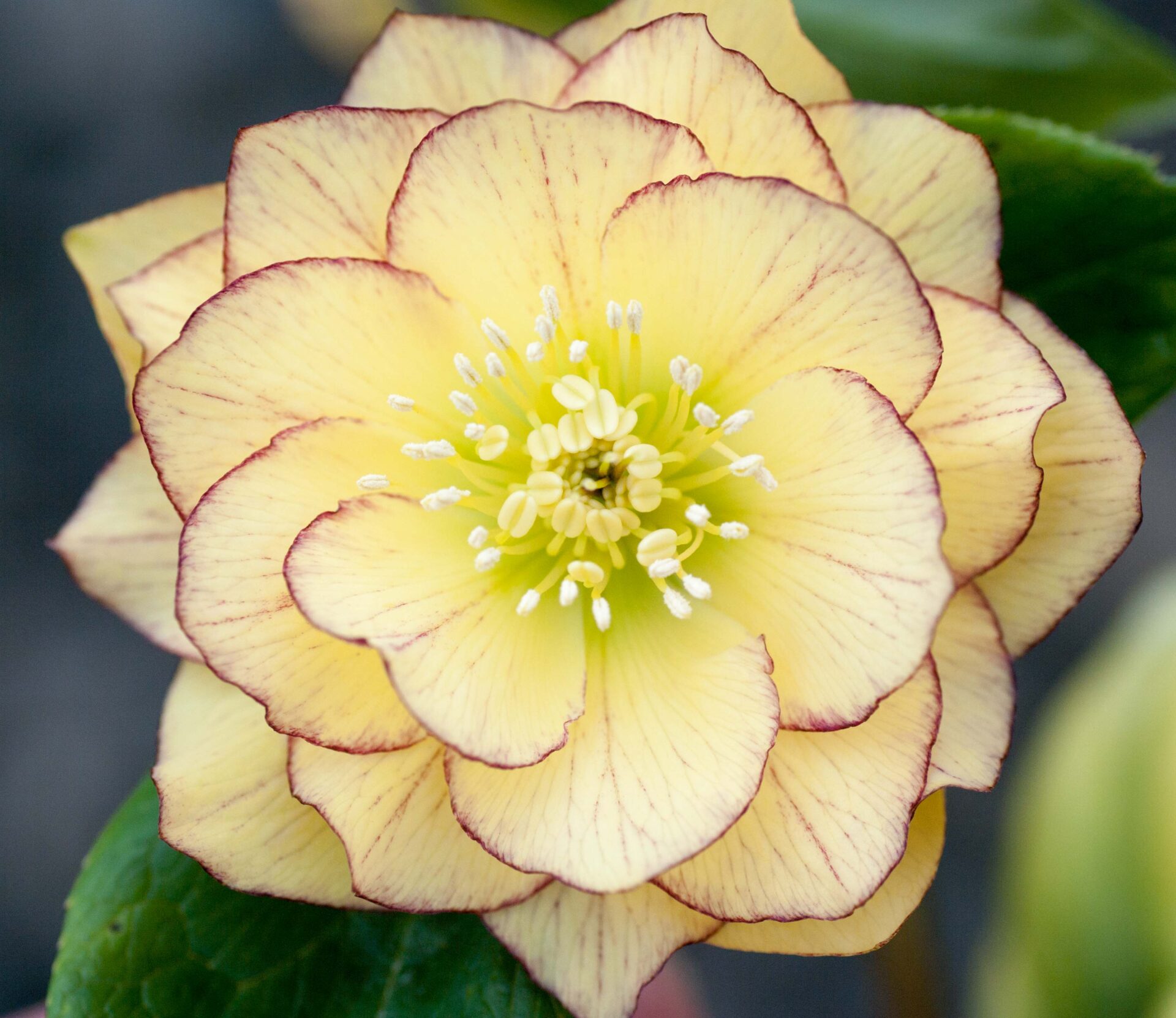 Lovely primrose yellow doubles with a delicate line of burgundy to the edge of the sepals. We have developed this strain from a couple of plants we imported from Japan in 2011 and it has proven both vigorous and reliable. One of my favourites.